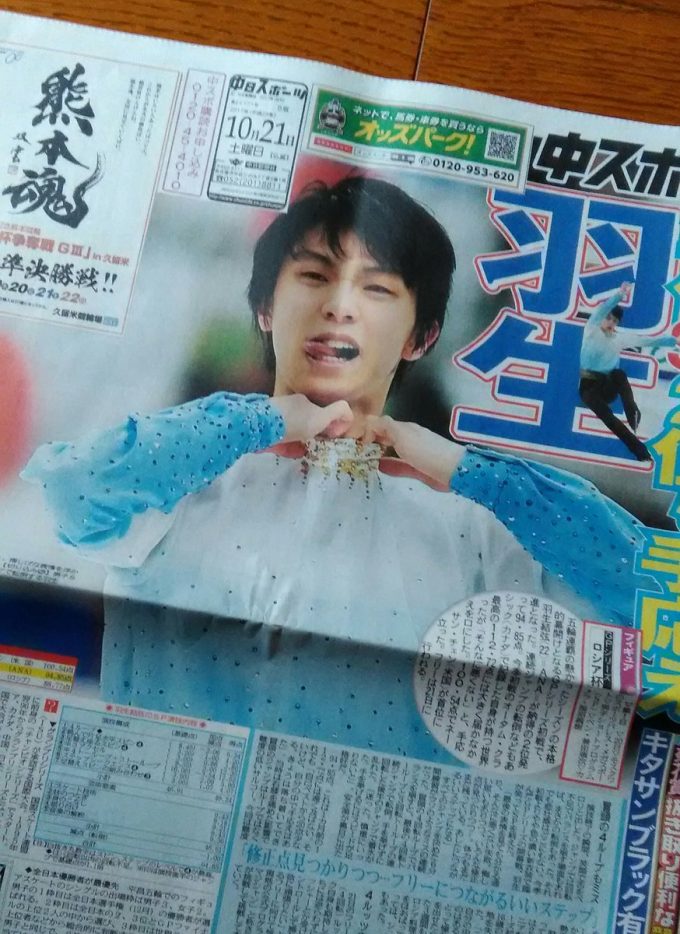 中日スボーツ羽生くんカラーで1面だった。