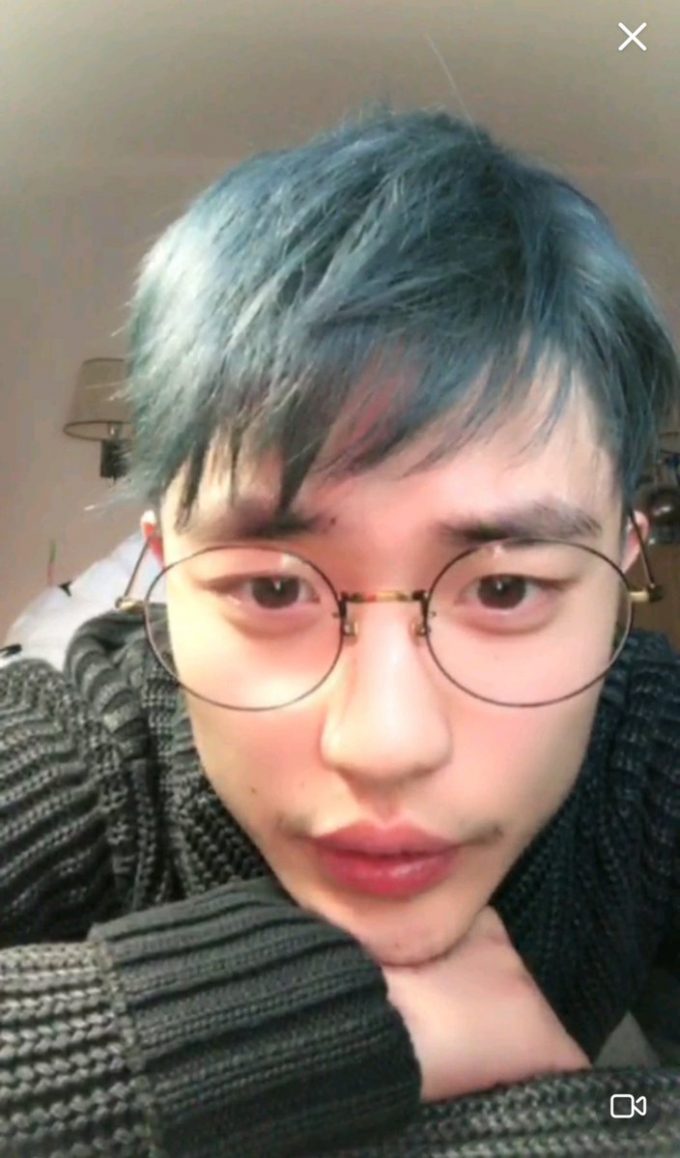 ハンヤンが丸メガネに髪の毛を青色に染めてイメージチェンジ。お洒落男子に変身