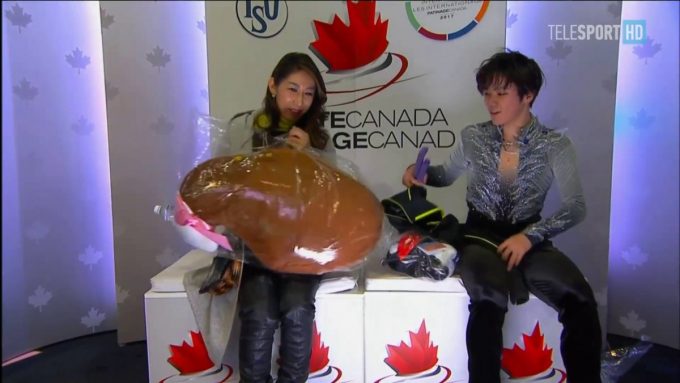 祝!GPSカナダ大会優勝。家庭画報のインスタグラムに豪華な特性肉弁当を前にした宇野昌磨選手の写真を掲載