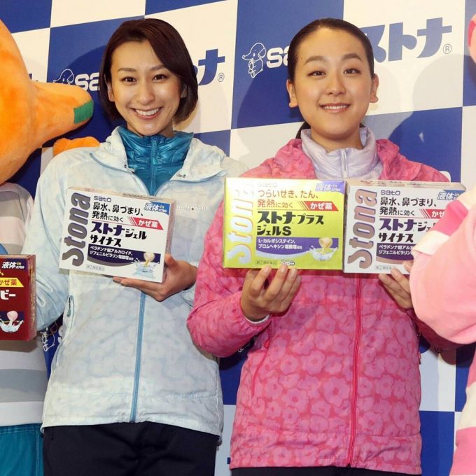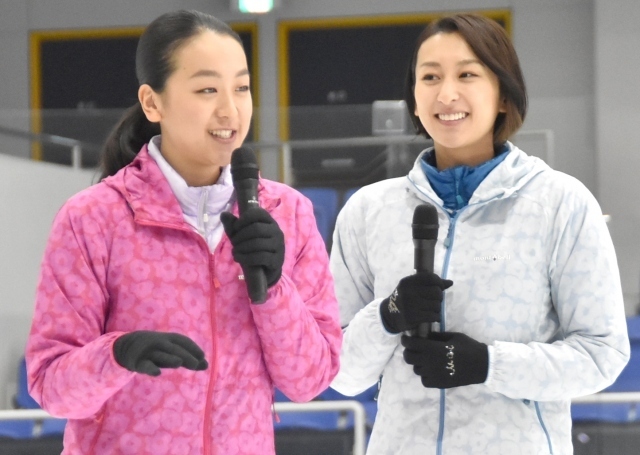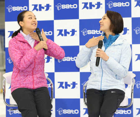 フィギュアスケート女子で世界選手権3度優勝、10年バンクーバー五輪銀メダルの浅田真央さん(27)とスポーツキャスターの姉・舞さん(29)が31日、新横浜スケートセンターで佐藤製薬のかぜ薬「ストナ」の新CM発表会に出席した。