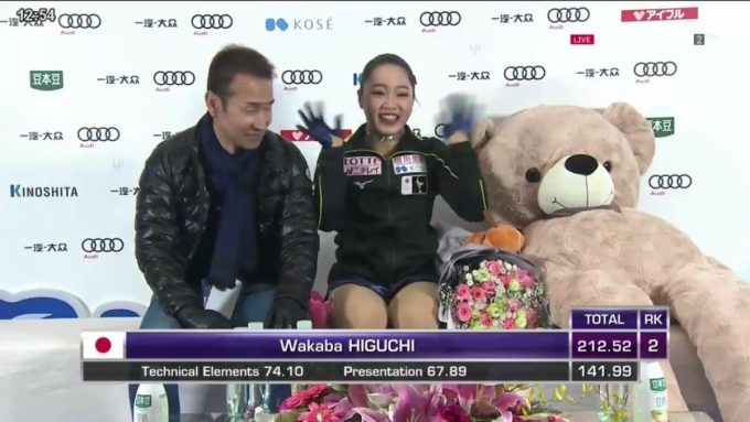 そして、日本人選手最後の登場となった樋口は、映画「007 スカイフォール」の主題歌に合わせて渾身のパフォーマンスを披露した。ジャンプもノーミスでクリアし、演技が終わった瞬間には力強いガッツポーズ。フリーで141.99点、合計212.52点というハイスコアで第1戦のロシア杯(3位)に続く表彰台を決めた。