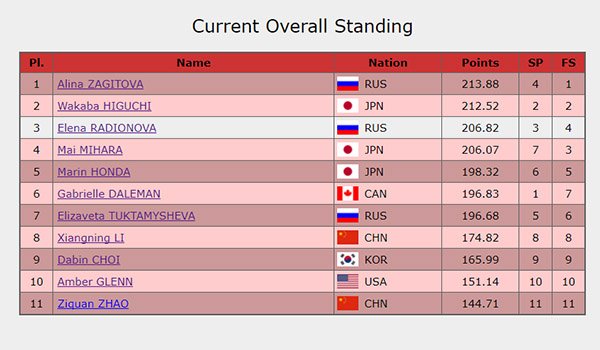 次戦で1位、最低でも2位ならファイナルの可能性あるけどオズモンドとまたザギトワと一緒か