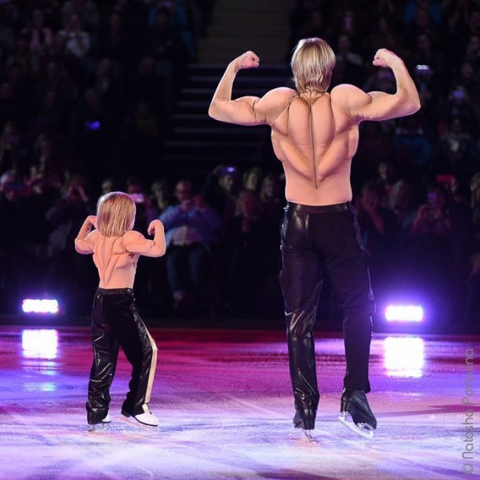 プルシェンコとサーシャの親子共演が実現。リンクの上にプー人形が投げ込まれ拾い上げる夢も実現