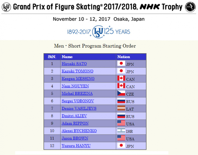 公式練習で4回転ルッツを跳んだ際に着氷で右足をひねり転倒。右の足首と膝を痛めた。10日朝に腫れがなければ公式練習に参加する。今大会には前人未到の5連覇がかかるGPファイナル(12月7~10日、名古屋)進出がかかっている。