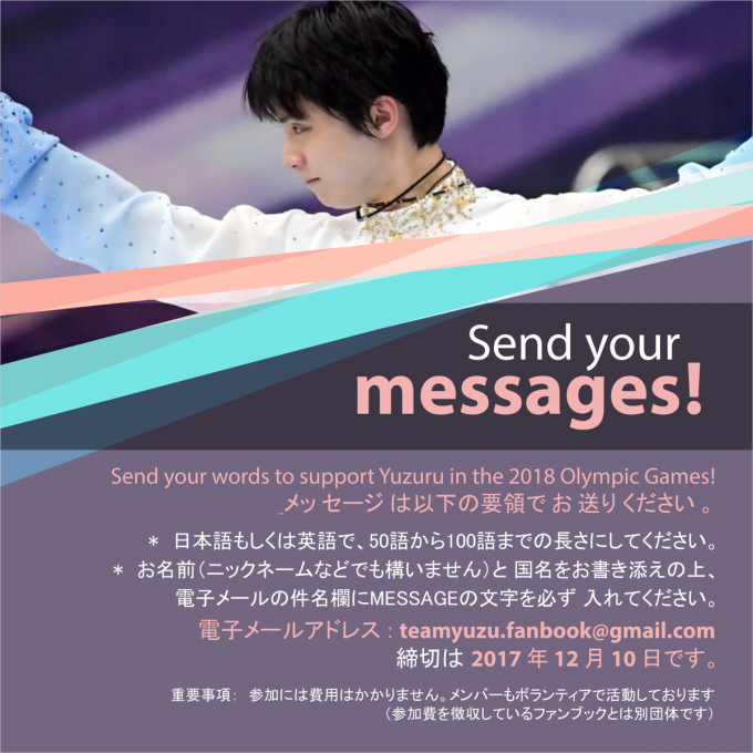 イラストも募集してるみたいだね。羽生君に直接届けるんだ。読んでくれて喜んでくれると嬉しいなぁ。