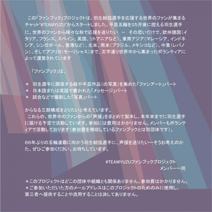 海外のファンが羽生君へメッセージブックを送る企画やってるみたい