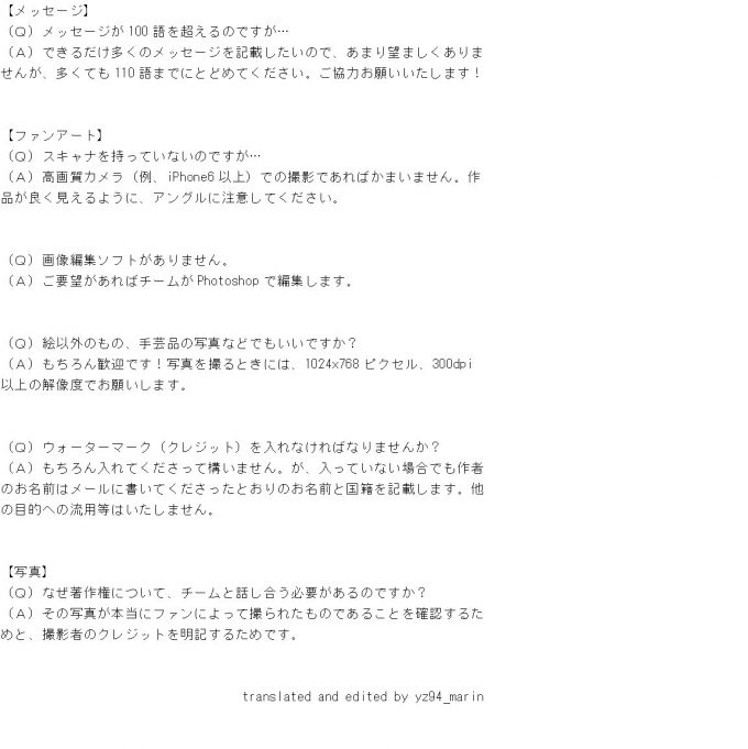ファンアートの写真を送ってくださいって書いてあるね。