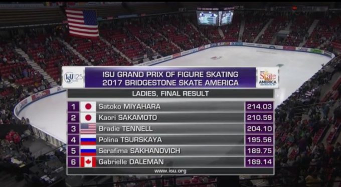スケートアメリカ大会2017。女子FS宮原知子が優勝。坂本花織は2位。樋口新葉のGPファイナル進出が決定