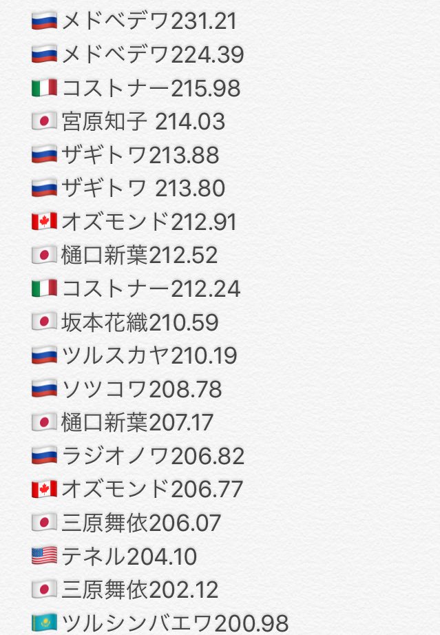 オリンピックまでに調子上げて欲しいね。ツルスカヤだっけ?採点おかしかったね。ブーイング起きてたわ。ただ、スケアメは、順位は正当かな。