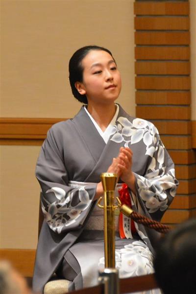 着物姿で登場した浅田さんは「このような栄えある賞を頂き、誠に光栄です」と笑顔を見せ、「この賞を頂いたことを励みに、さらなる高みを目指して頑張りたいと思います」と語った。