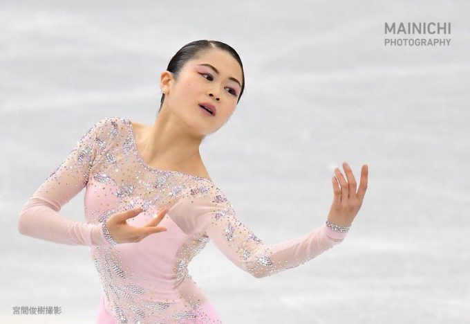 SP3位発進の宮原は、本番衣装でリンクに登場した。フリー「蝶々夫人」の曲かけ練習では3回転フリップで珍しく転倒したが、全体を通して安定感あるジャンプを披露。11月末のスケートアメリカ後、手直しした振り付けを入念に確認した。