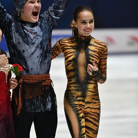 出場選手によるエキシビションが行われ、女子シングルの金メダリスト、アリーナ・ザギトワ(15)=ロシア=がトラ柄のタイツという衣装で、妖艶な舞を披露した。