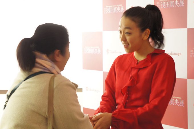 フィギュアスケートの元世界女王で、4月に現役引退した浅田真央さん(27)が13日、大阪高島屋で開幕した「美しき氷上の妖精 浅田真央展」を訪れた。