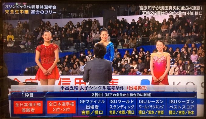 2枠目は、新葉ちゃんか、花織ちゃんどちらかだね。冷静に見返して見るとさっとん優勝で間違いなかった。花織ちゃんの点数は、抑えられた感はあったけど、これからまだまだ伸び代があるから修正していけば良いかな。
