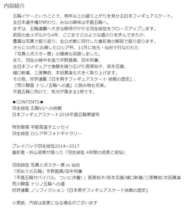 羽生結弦 五輪V2への挑戦 日本フィギュアスケート2018平昌五輪展望号(集英社ムック) – 2018/1/11