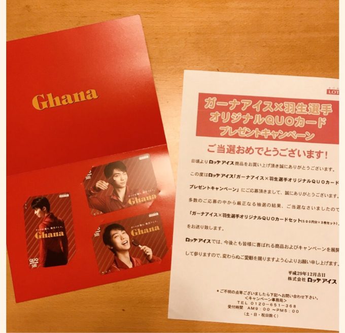 羽生結弦選手のクオカード×3枚セット、今年も当たった\(^o^)/ありがとうございます♡