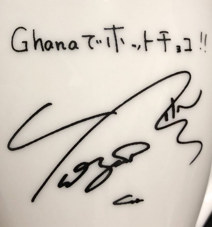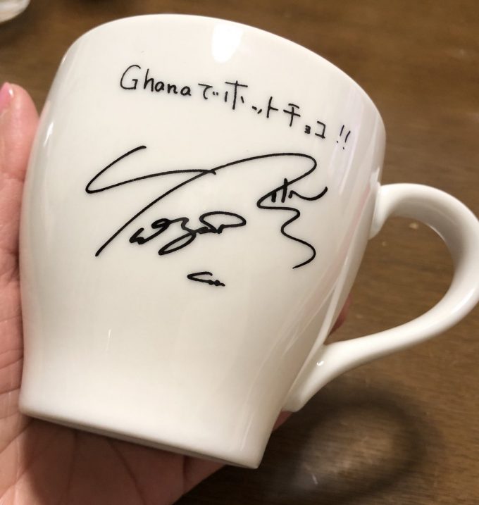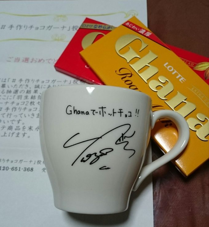ロッテさんの結弦さんサイン入りマグカップ、メッセージも入ってる。