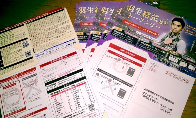 この三連休のゴタゴタでまだイオンに羽生さんトークショーの応募ハガキ来てないらしく用意は来週以降になるようだ💦