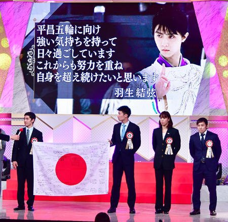 2017年に活躍した選手や団体をたたえる「テレビ朝日ビッグスポーツ賞」の表彰式が11日、東京都内で行われ、平昌五輪の男子フィギュアスケートで66年ぶりの連覇を狙う羽生結弦(23)=ANA=が、代表入りが決まってから初めてコメントを発表した。