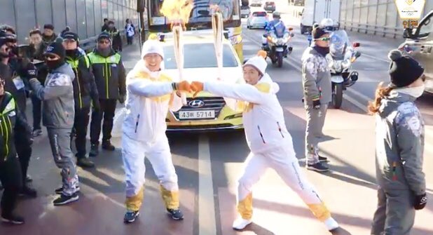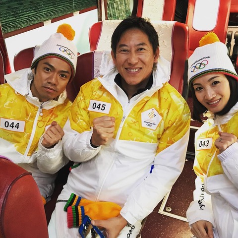 @平昌オリンピックではまた多くのアスリートの夢が叶いますように!そしてスポーツが世界の平和に繋がる力になりますように!一緒にオリンピックに行った大ちゃんに聖火を繋ぐリレーとなったのは嬉しい瞬間でした(=´∀`)人(´∀`=)