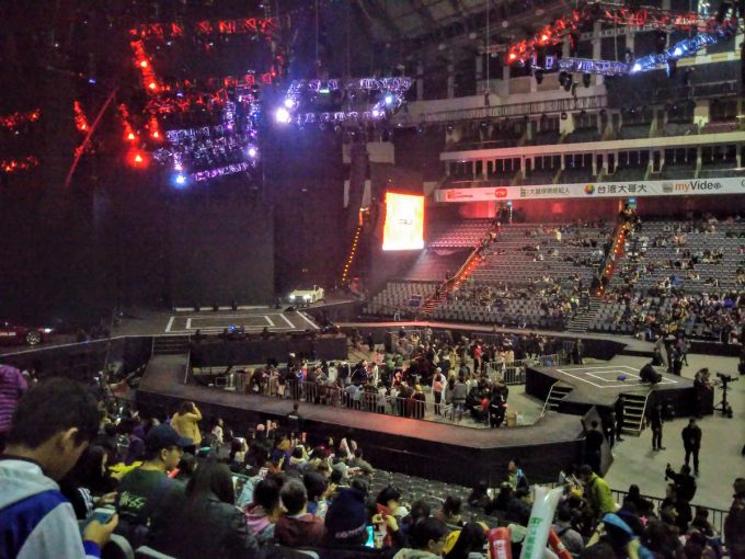 超級巨星紅白藝能大賞の収録会場の台北アリーナ内に入りました。花道の中のスタンディングの人達羨ましい😊午後6時35分 2018年1月13日