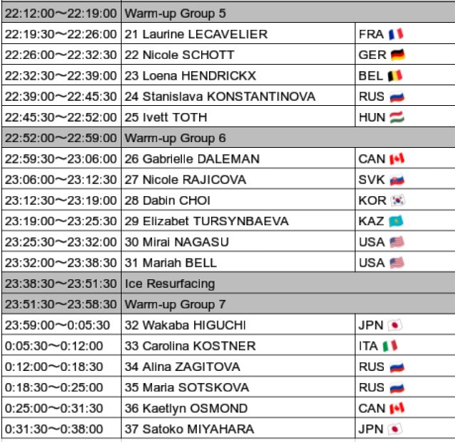 宮原知子は最終37番滑走、ザギトワは34番、樋口新葉は32番 世界選手権女子SP