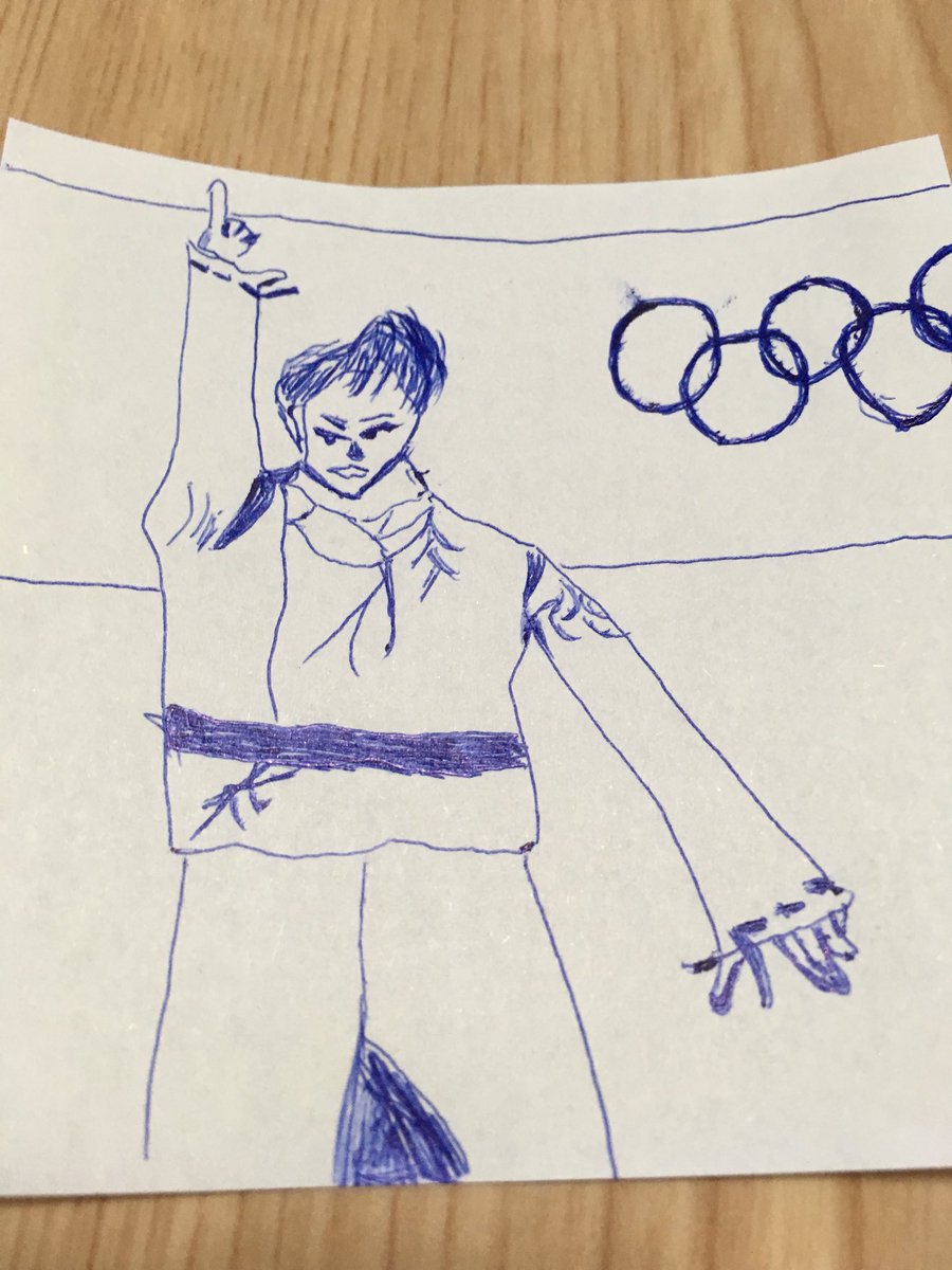 羽生さんファンでもフィギュアファンでもない友人が、描いたんだけど・・・何気に特徴とらえてるような・・・🤣  #羽生結弦の絵描くの下手くそ選手
