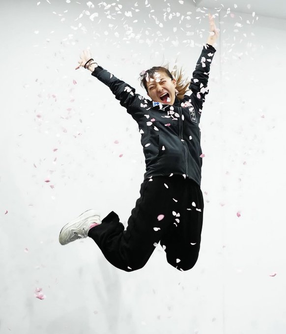 • 世界フィギュア:坂本花織選手を桜吹雪が祝福!競技を終えた仲間たちの笑顔と温かい絆。