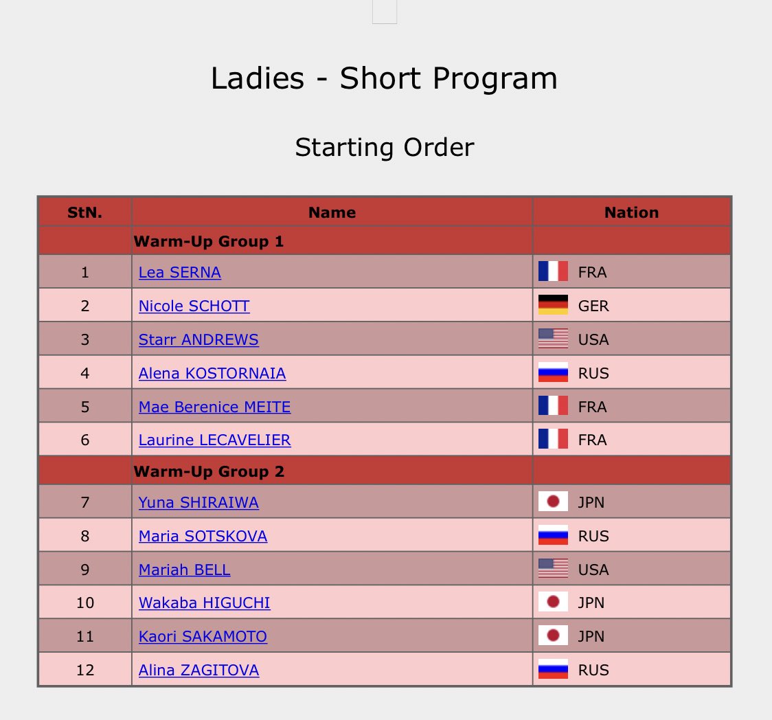 GPSフランス国際2019 女子SP 白岩優奈 樋口新葉 坂本花織の滑走時間は!?