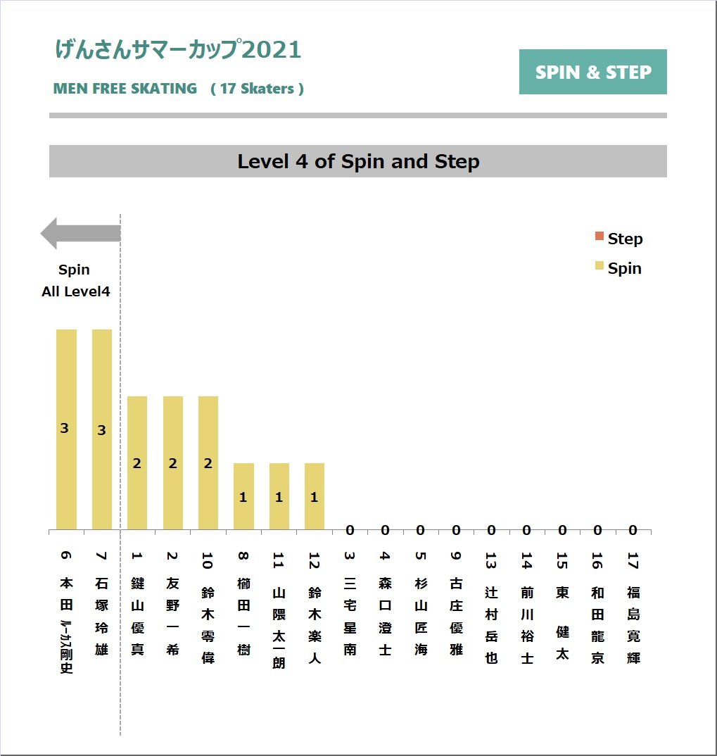 #げんさんサマーカップ】男子フリーのスピン・ステップのレベル。