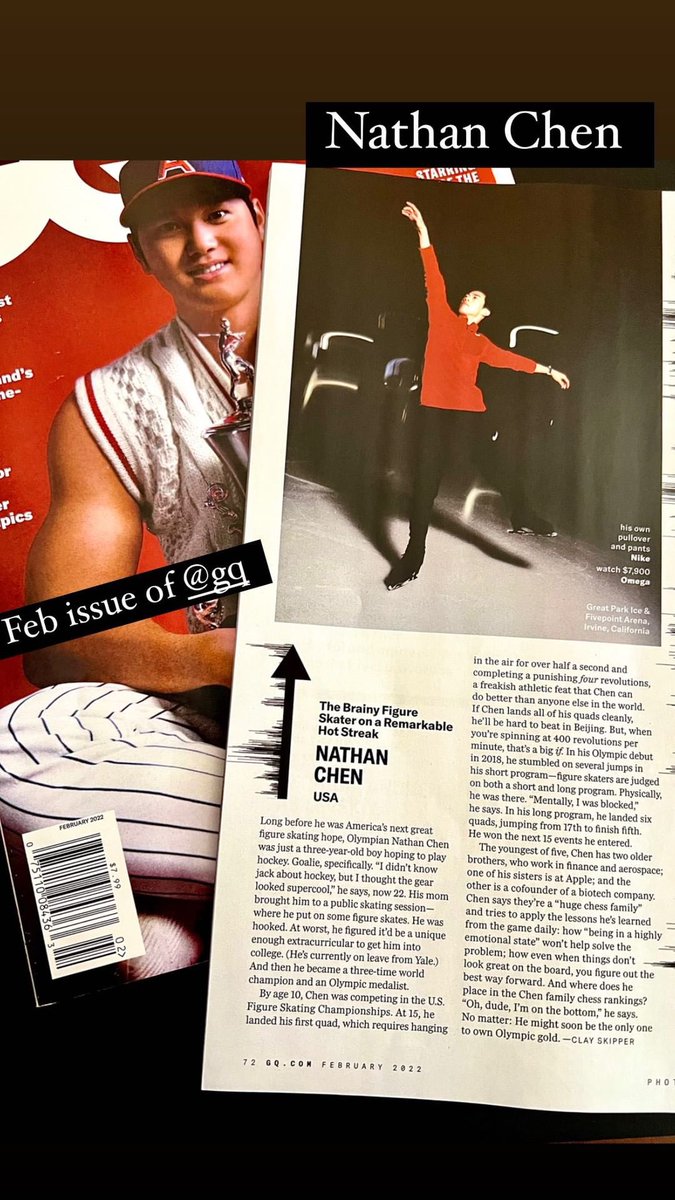 大谷翔平選手が表紙の米ファッション誌「GQスポーツ世界版」にネイサン・チェン選手も掲載されてます。
