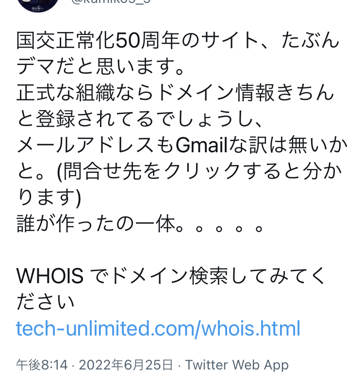 @国交正常化50周年のサイト、たぶんデマだと思います。