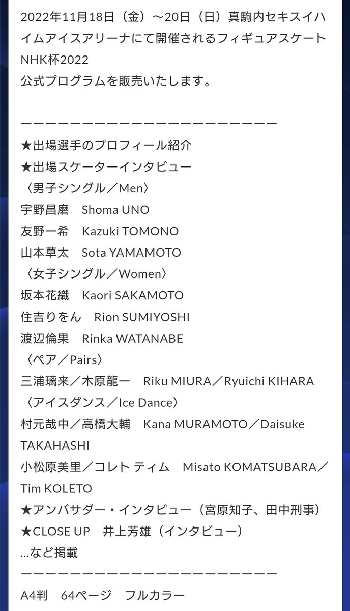 N杯公式プログラム、日本選手全員インタビューありそう!アンバサダーのさっとん&刑事くんも✨