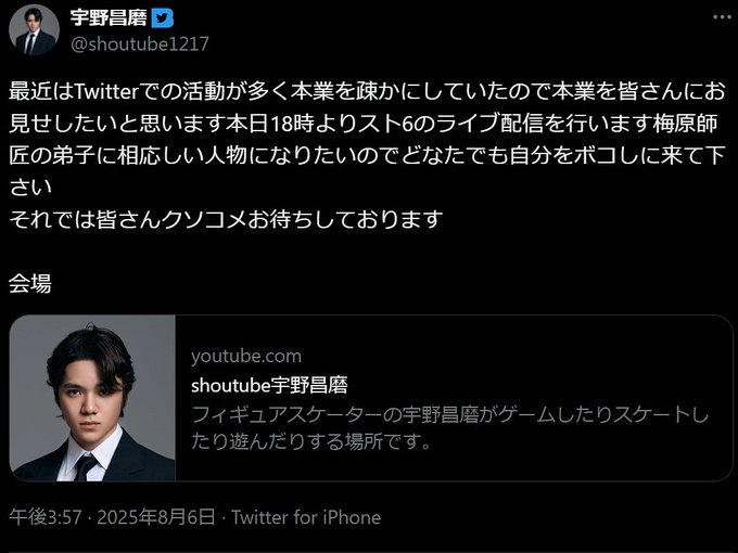 • 宇野昌磨の哲学が斬新すぎたwww本質は「ゲーマー」でショーは「アイドルのライブ」本番は基礎“全無視”発言に氷上スレ騒然!