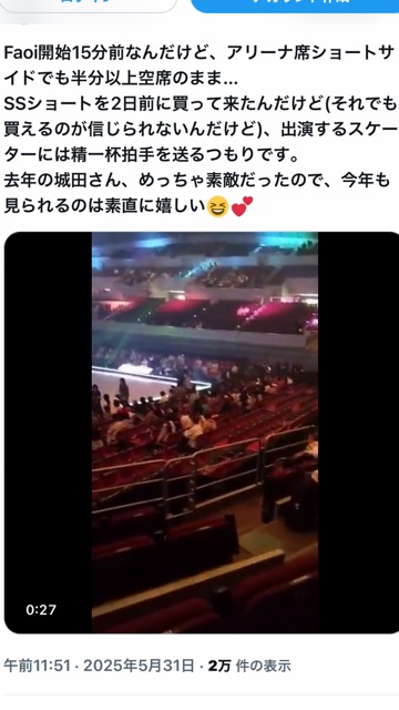 羽生選手inのFaOIはいつも満席で天井までびっしり。しかし~羽生選手なしの会場はガラガラ。