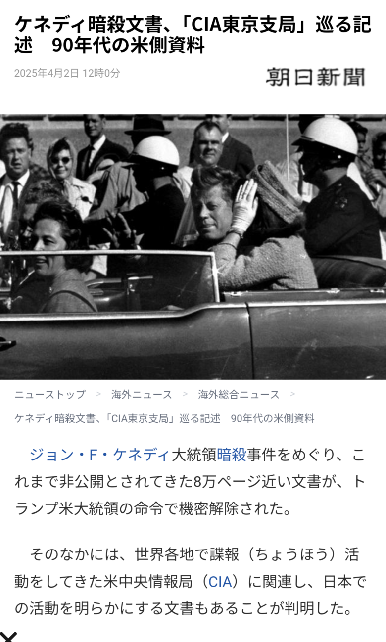 今年4月にトランプ大統領が公開したケネディ暗殺文書でCIA東京支局の存在が明らかになった(一部の新聞社しか報道しない)