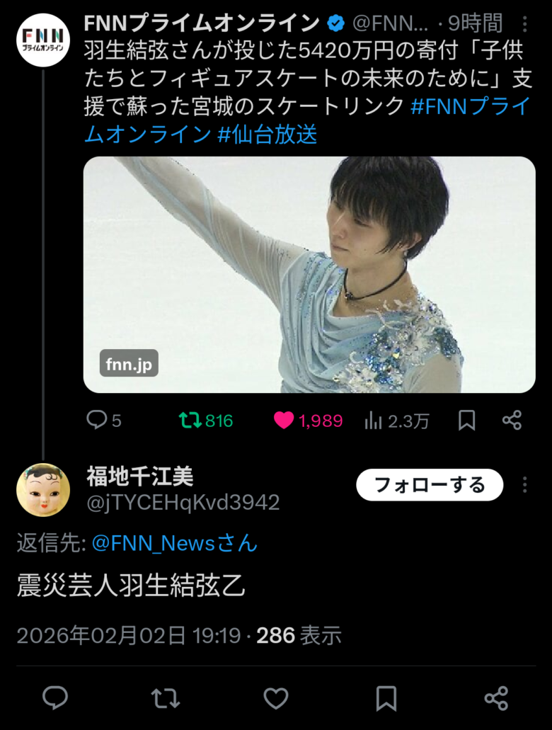 — FNNプライムオンライン (@FNN_News) February 2, 2026